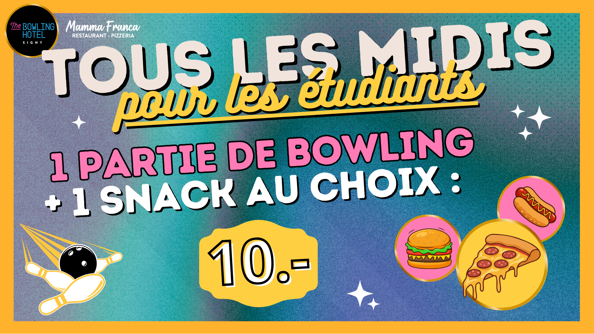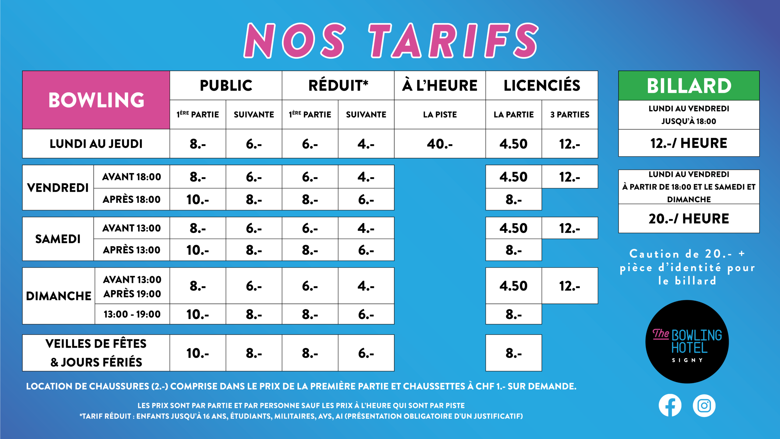 18 pistes de bowling dernière génération, 8 billards, salle de jeux interactifs, fléchettes.